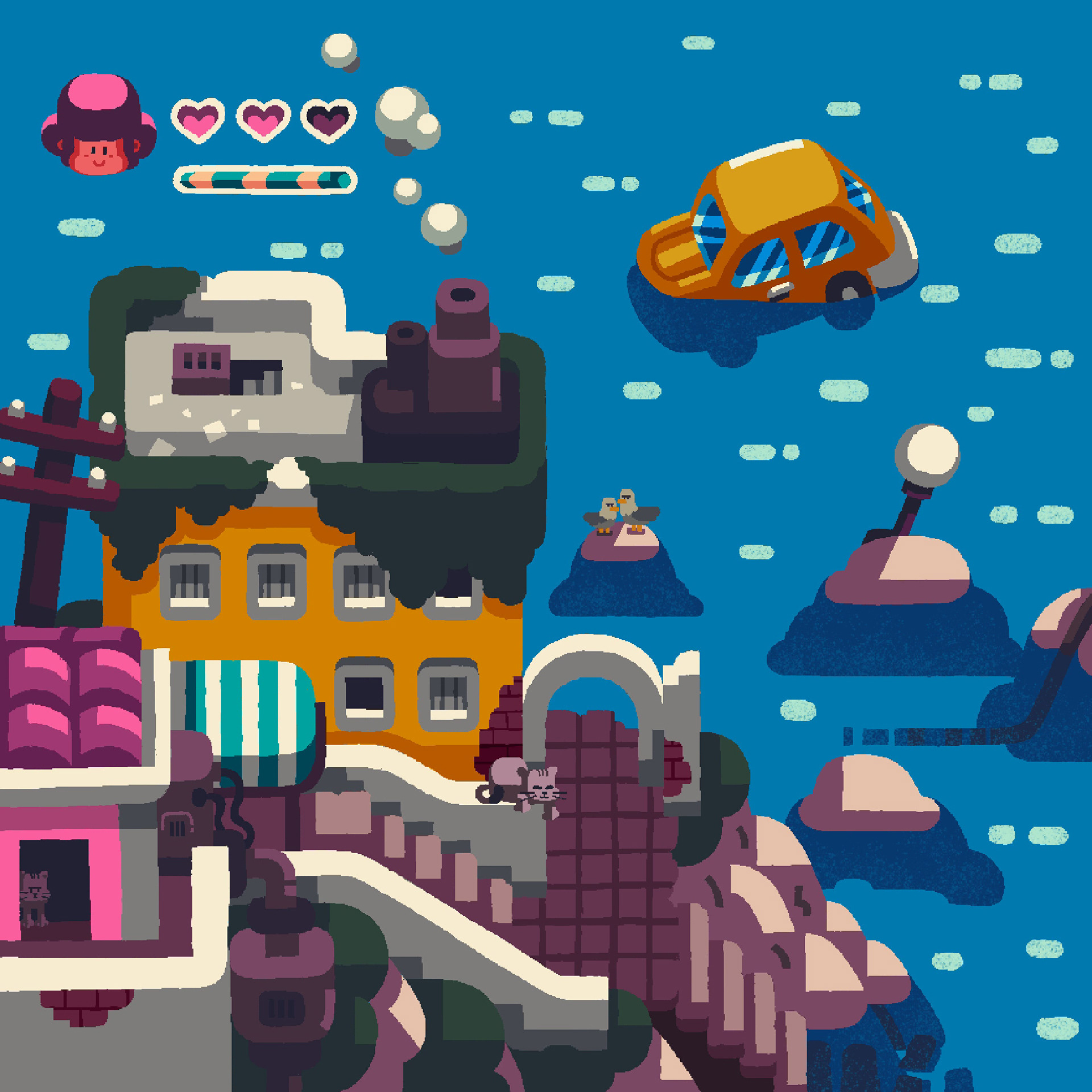 I'm the creator of the IP and art director of the new game (I've also worked on the first game, for mobile), working on concepts, character designs, backgrounds, color patterns and even letterings and logos.